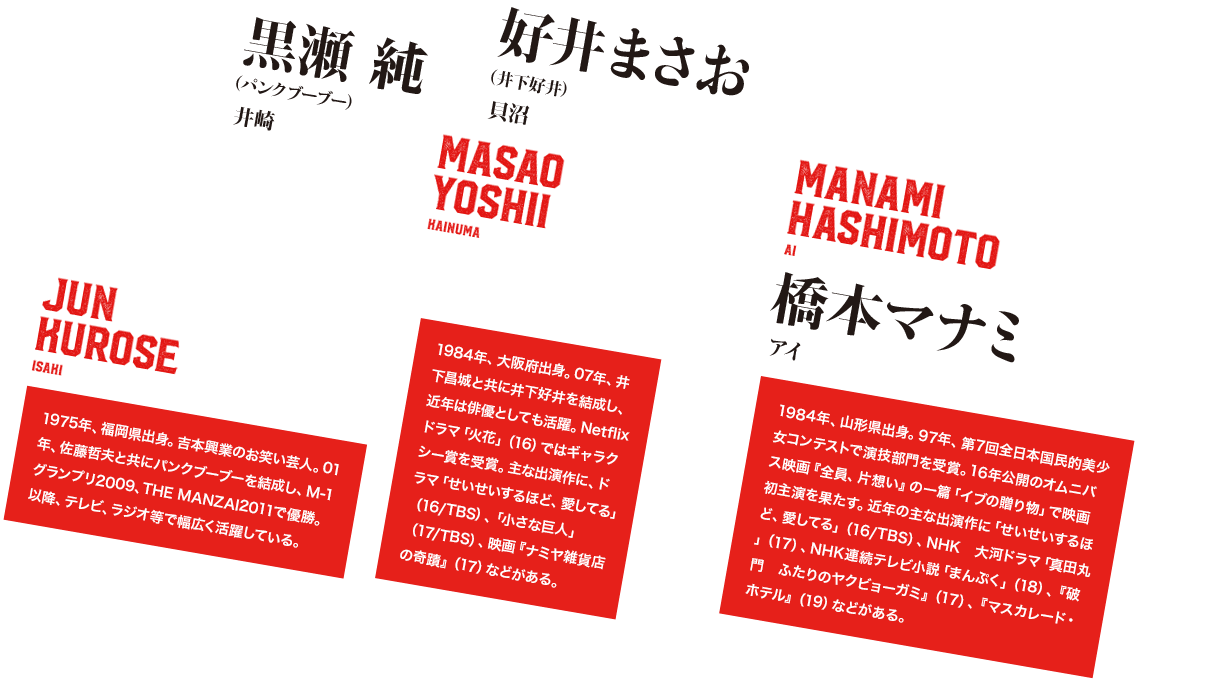 加えてレギュラー俳優陣による奇抜かつリアリティあるキャラクター造形。